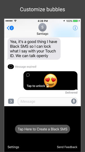 Keep messages private by protecting them with your fingerprint or a passcode (now built directly into iMessage!). 170,000 people already use Black SMS for confidential work-material, private medical communication, photos, group chats, and relationship advice. Download now to protect your messages w…