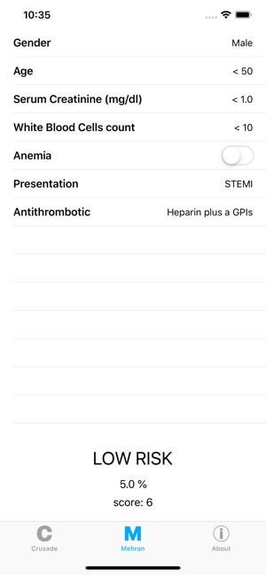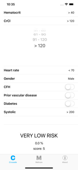 The Bleeding Score Calculator should help cardiologists estimate a patient's baseline risk of in-hospital major bleeding during both ST and non-ST segment elevation myocardial infarction (STEMI, NSTEMI). The calculator compares CRUSADE and Mehran's methods to provide a richer picture. Bring this ap…