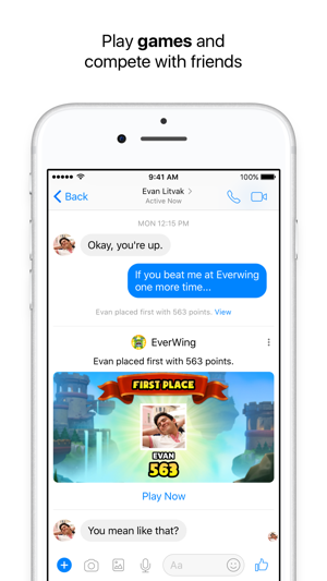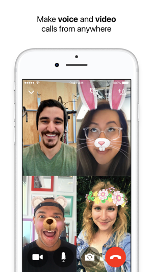 * 发消息:无需互换手机号,发消息让沟通更自在。跨设备的无缝体验。 * 斗表情:添加傻乎乎的贴图,发送跳动的动图,或使用表情来更好地表达自己。 * 分享照片与视频:使用 Messenger 相机捕捉精彩时刻,添加滤镜或涂鸦,然后发送给好友或分享到快拍。 * 团体活动:使用投票制定聚会计划,共享你所在的位置,分摊账单等等。 * 进行语音或视频通话:任何时候、任何地方,只要手机一亮,即刻接通语音开聊,想视频群聊**?用不用滤镜就看你啦,素颜出镜也是美美哒 :) ** 通话在 Wi-Fi 网络下免费,其他场合按标准流量资费收取。 * 发送语音留言:当文字无法表达内心的想法时,点击录制按钮,然后说话、…