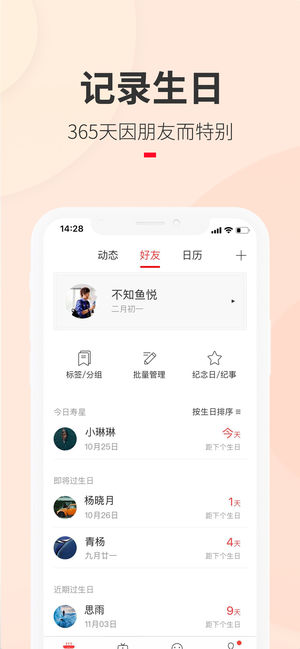 生日管家-6000万人同在的情感社交产品 [大师在线][塔罗占卜][达人解惑][神秘学测试][生日节日送礼指南] 记生日订蛋糕,问大师批八字,占情感卜运势,就到生日管家 【记日子】 生日、纪念日、节日,每个一起走过的日子,都值得纪念。 这一次,管家君为您提供温馨、智能的解决方案。只需微信快速登录或者手机验证码登录,所有的日子,管家君为您自动记录,重要的日子,管家君为您及时提醒。 【送祝福】 世界上最珍贵的都是免费的,阳光、空气、水,家人的陪伴。 祝福也是这样,生日时爸妈的一条短信、老友的一条微信、同事的一个生日贺卡、管家动态上亲友的点赞和祝福,都是他们的关心的最直接表达。 【订蛋糕 买礼物…