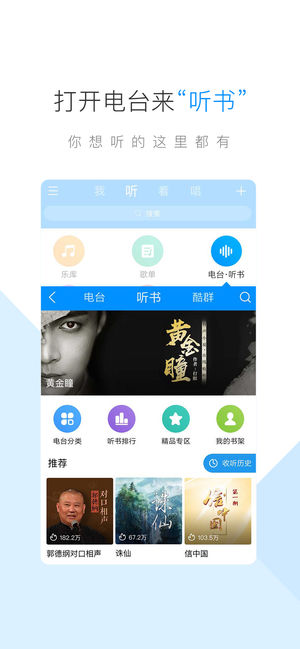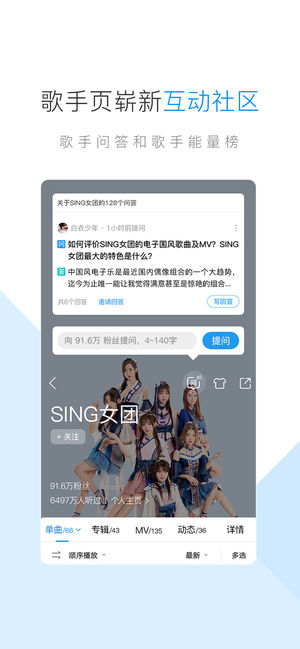 【酷狗音乐核心功能】 1. 更人性化的操作界面 界面全新设计,清新简洁,点划之间尽享畅爽体验; 2. 乐库体验大有不同 耳目一新的乐库,新歌速递、权威榜单、精选歌单,你要找的音乐,都在酷狗乐库; 3. 专业蝰蛇音效 由蝰蛇(VIPER)专业打造的智能均衡环绕音,更有多种预设音效,让同一首歌也有不同的味道; 4. 融合酷狗收音机 音乐、情感、新闻……聆听不同的声音,感受不同世界,重拾不经意流去的调频时光; 5. 随身携带的手机KTV 超过300万首海量伴奏,录音棚、KTV、音乐厅、演唱会……多种音效,蝰蛇(VIPER)音频渲染,让你开嗓即成天籁; 6. 互动社区,以歌会友 精准定位…