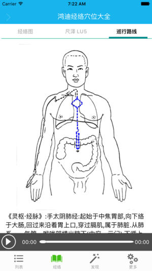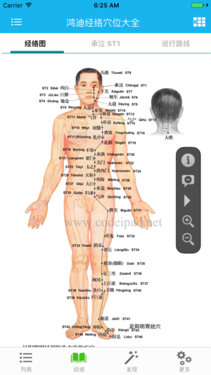 适合于中医学院的教师、学生、医务工作者、按摩师、注重养生保健的人士。 1、根据国家标准收录20条经脉(12条正经+8条脉)的穴位和经外奇穴(头面颈、躯干部和手、足部),包含经络的属性、主治范围和经络的当令时辰等信息。 2、支持显示12条正经和8条脉的循行路线图。 3、详细说明了408个穴位的注音、定位方法和定位图、主治范围、解剖原理、配伍、针灸方法、附注。 4、说明了每个经络的五输穴井荥输经合、母穴、子穴、原穴、俞穴、募穴、郄穴。 5、可以根据穴位关键词搜索、也可以根据疾病搜索相关的穴位。 6、可以显示当前的当令经络。 7、具有经络的相关口诀,并有语音朗读(女声),方便记忆。 8、动态显示巡行…
