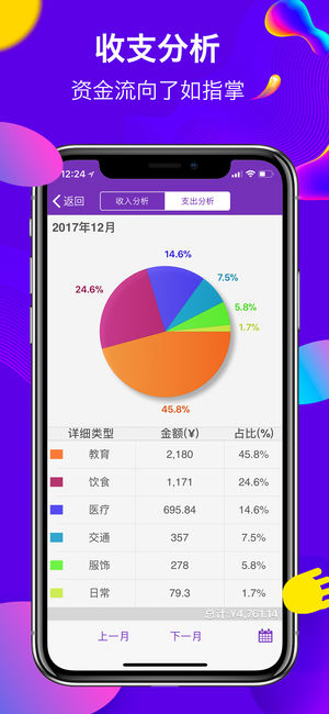 您是否还在为每个月挣的不少剩的不多,而不知道钱花在哪里的状况而烦恼了?本产品将帮助您养成及时记账的习惯,优化消费结构,促进合理消费。一款日历式的记账本,让你轻松管理日常消费。 功能介绍: - 增加记账:以简洁的操作及尽少的输入操作帮助你记录每条收入支出项【账单拍摄/计算器/小数点】 - 历史记录:以月为单位列出每月的收入支出项,可以修改,删除每项记录 - 收支分析:以图表的形式分析每月的收入,支出结构 - 收支统计:查看某个时间单位内(周,月,季)的收入支出对比 - 预算设置/对比:设置支出预算并对比支出,预算额 - 密码保护功能(支持TouchID) - 自定义收入、支出类型 - 按月…