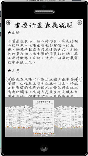 【App軟體特色】 此App適用於所有iOS裝置,只需購買一次,即可同時安裝於您自己的iPad,iPhone及iPod Touch等裝置上。 【App軟體描述】 綜合講評12星座各自的特點,並肯通過將12星座跟血型、男女、愛情、夫妻、職場、性愛、時尚的拆分對比分析,詳細披露同一星座各個血型、男女、愛情、夫妻、職場、性愛、時尚之間的不同點,讓你更瞭解自己,也更瞭解身邊的人,在為人處世中更懂得把握尺寸,做到如魚得水,避免遭小人重傷,也避免自己傷到自己。 您該摸透的12種星座情人,您該知道哪些藝人和您的情人,有一樣的星座特質和祕密?您該活用的星座速配表和星座情歌點唱祕笈,讓您用歌…