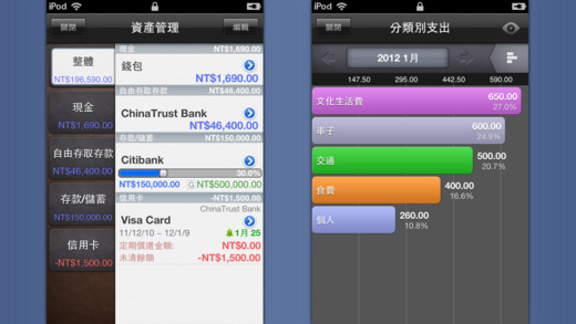 智能家计账为容易操作而很方便输入速度也很快 使用者的经验(UX)最大的反映到家计账上让使用者操作愉快 ** Finance Top Paid #1 (Australia, Korea, Japan, ...) 为了您宝贵的一份钱要省,我们全新诚意提供家计账管理服务 * 容易显示的屏幕(dash board)构成 -在每期屏幕上可确认每天的交易内容而提供月历一看就能知道一个月的支出内容。 - 在每月屏幕上表示图标可确认一个月的每日交易内容。 - 在年间屏幕上可确认每月的收入/支出内容及年间交易内容。 * 分类图标的定做 (with Google) - 大分类/小分类编辑可以 - 分类图标的颜色可以自由选择(颜色选择UI提供) - 小分类图标的相片可以变更及一看就知道使用内容 - Google图像支持 (如果这样没有帮助,寻找更好的英语) * 容易迅速输入方式 - 交易输入时尽量屏幕的接触少,可以迅速输入 - 在输入屏幕上所有的输入项目可直接选择因屏幕转换少的输入时间和不便问题最少化 * 信用卡/支票式信用卡 - 通过信用卡的基准日/结算日的输入,支付预定金额与余款自动计算及目前信用卡的使用内容表示 - 信用卡的结算日可以指定及自动转帐。 - 支票式卡使用时在结算存折上自动冲抵 * 资产管理 - 现金,自由存取式, 存款与积金,保险,支票式信用卡,信用卡,金融市场,房地产,上网货币,贷款,负债等多种类的资产管理 - 积金资产是输入目标金额或总存款次数,条形图来现在的状态容易管理 * 多种类的备份/复旧方式 - 用邮件来发备份文件 - 邮件来已发送的备份文件或选择在网站连接的备份文件可以复旧 - 在WiFi(无线网)上可以复旧 * 反复交易功能及分期支付功能 - 要反复输入的操作为自动追加 - 用信用卡时按照分期个月数下月自动追加 * 书签功能 - 常用的交易(支出/收入/转帐)内容可以登入及再使用 * 统计功能 - 分类(大分类/小分类)的支出/收入内容提供 - 預算比支出內容提供 - 条形图,圆形图提供 - 可以自己想要的资产选择另外统计确认。 - 可以多种的角度来期间(日/周/2周/月/2个月/分期/年)确认。 * 其他主要功能 - Touch ID 支持 - 本周开始日期设定 - 一看算式同时能输入,方便的计算机 - 加发票相片功能 - 基本通话设定功能 - 迅速检查功能 - 客户管理功能 - 为了输入便利,加支出/收入时基本值可以制定 - 密码锁定功能 - 密码忘记时(超过失败次数)自动邮件发送到本人的邮箱 - Excel输出