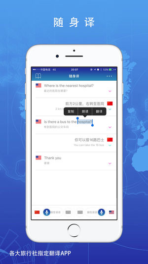 长期占据排行榜第一名、支持35种语言的翻译类APP! 携程、去哪儿及各大旅行社推荐出国使用的翻译类APP! 最好用的语音翻译软件,可进行语音翻译,文本翻译,翻译准确度非常高,软件超省流量,翻译速度也非常快,除此之外,软件还提供了常用短语。 ========出国旅行必备神器======== 商店里最好用的*同声传译*软件,杀破狼2-吴京爆款! 能听懂、也会说35种语言的同声翻译官! 主要功能包括: 1.语音输入 - 还在为打字慢以及没有其他语言的输入法发愁吗?直接使用语音输入吧!完美识别各国语音,识别准确率可达95%以上。 2.即时翻译 - 快速输入你想翻译的任何句子/短语/字,即时…