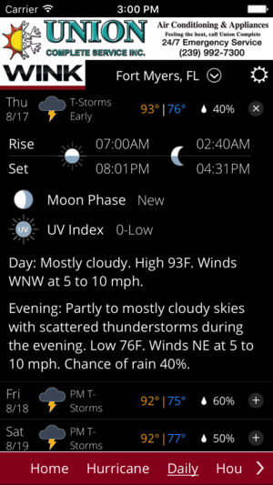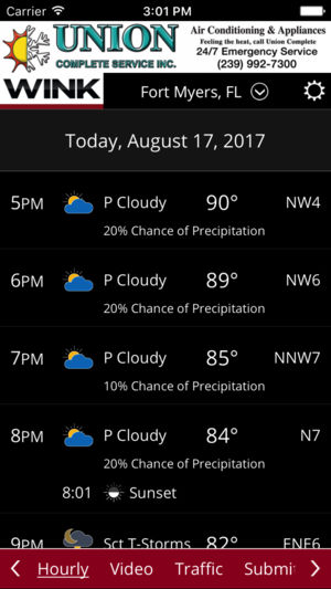 The WINK Mobile Weather Authority App includes: * Access to station content specifically for our mobile users * 250 meter radar, the highest resolution available * Future radar to see where severe weather is headed * High resolution satellite cloud imagery * Current weather updated multiple times p…