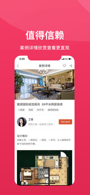 苹果官方推荐产品 【两百万张装修美图】 拥有超过两百万张装修美图,图片类型涵盖当今流行的各种装修图库方案和家居产品搭配,用户通过风格、空间、色系等选择,可以快速找到想要的装修样式。装修图展示整体空间布局和局部细节图,让用户寻找装修灵感,挑选出自己喜欢的风格样式。 【十万资深设计师】 整合了优质的家装图库资源,汇聚了全国十万资深设计师,技艺精湛的金牌施工队和数百家一线品牌合作厂家。通过去除中间环节,第三方监理全程把控施工质量,为用户提供标准化装修及软装服务,从而可以让用户花更少的钱,轻松把您的爱巢装修得更加漂亮及个性化。 【帮你找灵感】 您可以通过《装修图库》APP浏览家居美图、装修案例,找…