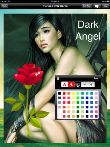 ************************************************************** The paid/full version is completely ads free, has high resolution images, and has the premium emoticons. ************************************************************** 2 million users love Pictures with Words! It's a free, fun, and simple way to make and share gorgeous Pictures with Words, Emoticons and Photos on your iPhone or iPad. Features: ✔ Pick from several gorgeous fonts and colors. ✔ Pick from the amazing selection of emoticons and emoji. ✔ Add even picture-in-pictures. ✔ Use the Pinch gesture to Zoom and Rotate ✔ Create photo collage and mix multiple photos together. ✔ Add captions and emoticons directly while taking photos ✔ Load from your camera roll ✔ Download beautiful images from the web. ✔ Download every minute a new trending image from the web ✔ Save or Share your photos via SMS, EMAIL, FACEBOOK, TWITTER, PINTEREST, INSTAGRAM, etc. Transform everyday moments into works of art you'll want to share with friends and family. -------------------------------------------------- Pictures with Words app takes picture taking and picture editing to the next level by allowing creative people enhance their original photos or images downloaded from the web. A picture enhanced with Pictures with Words app is a very different experience that million of users are discovering globally by playing with the app themselves. Most recipients of Pictures with Words enjoy the element of surprise the app brings compared to traditional picture sharing apps. A dedicated message in the picture caption, a cute emoticon or another picture embedded in the original snapshot are all greatly appreciated by the receivers because they make them feel the message was prepared just for them. Pictures with Words app makes it easy to place, size, and color text and emoticons. The picture creator can choose from hundreds of fonts and colors. Having composed the perfect text, users can save their new photo in the iPhone / iPad Photo Album, or share it from within the app via SMS, EMAIL, FACEBOOK, TWITTER, PINTEREST, INSTAGRAM, etc. Don’t save or share standard photos anymore. A picture is worth a thousand words, but add a few captions and annotations and it is much more. >>>>>>>>>>INSTRUCTIONS<<<<<<<<<<<<<<<< How to rotate the text: -Just pinch the text with 2 fingers and rotate the fingers How to zoom the text: -Just pinch the text with 2 fingers and move them apart