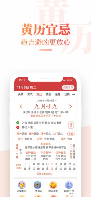 【权威万年历,全球3亿华人首选的日历APP!】 可适配iPhoneX/iPhone/iPod/iPad各种机型 【简介】 免费提供万年历查询、日历农历查询、黄历宜忌、公历农历转换、15日天气、节假日及调休安排、日程记事、节日纪念日提醒等实用功能,无限云存储空间数据永不丢失。 1、日历:万年历、农历、黄历宜忌、节日节气、放假安排、吉日查询; 2、提醒:日程安排、生日提醒、记事备忘、待办事项、纪念日、倒数日提醒; 3、天气:15日天气预报、24小时天气趋势、实时空气质量及恶劣天气预警,天气动态一手掌握; 4、特色功能:吉日查询、星座运势、周公解梦、财喜罗盘、黄大仙每日灵签、日期计算、生肖运程;…
