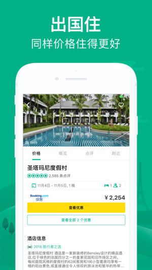 出境旅游酒店预订,海外自由行点评指南! 提供出境游酒店预定;酒店折扣信息、景点点评、美食点评、旅游购物攻略等,旨在帮助全球旅行者规划和预订行程!随时随地查看地图,点评,搜罗附近的吃喝玩乐信息! [亮点功能] 海量信息 - 覆盖全球190多个国家酒店、景点、美食、购物,当地活动,热门地点或冷门路线都一网打尽。 真实点评 - 汇聚全球旅行者的6亿条真实点评、建议和忠告,帮你做出正确的出行选择。 酒店预定 - 酒店价格快速浏览和比价,内置多种货币选择以便轻松预订,还加入全球各餐厅营业时间信息。 精选内容 – 发现全球实用旅行攻略,指南,游记等精彩内容,激发你的旅行灵感。 [TripAdvisor猫途…