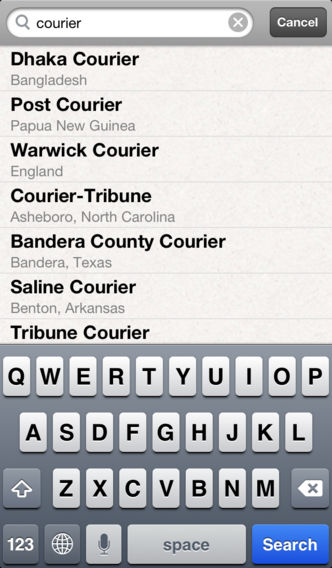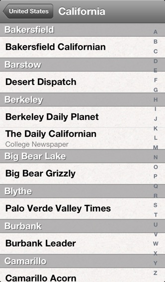 Browse an extensive collection of english-language newspapers from around the world. Keep up on world news, places you've lived and the hometowns of friends and family. • Includes 3000 english language newspapers from around the world. • Browse newspapers using an interactive map view. • Browse newspapers with a hierarchical list (region, country, state, city). • Full search capability • History of all newspapers you have visited, included time of last visit. • Favorites list (synced to multiple iOS devices by iCloud) • Quick lists for categorizing and quickly accessing your favorites (synced to multiple iOS devices by iCloud). • A full range of sharing options, including Email, SMS, Twitter, Facebook, Tumblr, Instapaper, Pocket, Evernote and Pinboard. • Full-screen web browser • Special gestures to make navigation easier. • Full support for devices with Retina displays, including the taller screens on iPhone 5 and iPod touch 5th Generation. • A Universal App with full native support for the iPad. A simple joy to use and a truly useful tool.