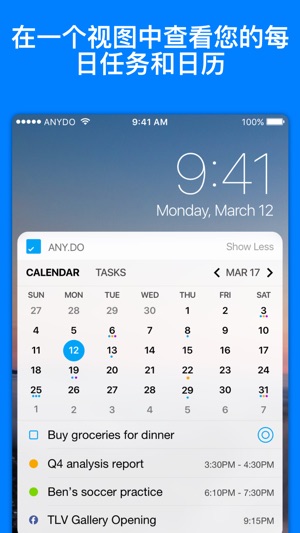 Any.do是“必须有待办事项列表,日历和提醒”(NYTimes,USA TODAY,WSJ和Lifehacker)。超过2000万人依靠Any.do来控制生活并完成任务。通过一个应用程序中的待办事项列表,日历,提醒和每日计划,您将能够完成更多工作。 排名第一和任务列表 SYNCS在您的移动设备,桌面设备,网络和平板电脑之间无缝访问。让您所有的待办事项列表,任务,提醒,日历和日程始终保持同步,这样您就永远不会忘记任何事情 在预定时间内获取提醒,当您到达特定位置或设置定期提醒时,您永远不会错过任何事情 与共享列表和分配的任务协同工作,与任何人协作并完成更多工作。 具有简单而强大功能的小工具可随…