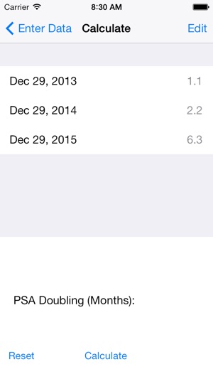A calculator to determine the PSA doubling time based on a linear regression of the log of the PSA values vs time.