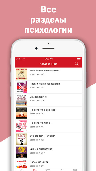 Самый большой каталог книг по психологии в AppStore! - обширная библиотека лучшей литературы по психологии и саморазвитию - лучшие авторы - Стивен Кови, Дейл Карнеги, Зигмунд Фрейд, Наталья Ром, Игорь Вагин, Александр Свияш, Радислав Гандапас, и др. - советы и уникальные методики от профессиональных психологов - все разделы психологии: воспитание и педагогика, саморазвитие, практическая психология и др. - самые популярные и эффективные тренинги - все книги представлены как в обычном текстовом варианте, так и в аудиоформате В приложении вы найдете информацию о способах достижения личного успеха, методиках воспитания детей, средствах для обретения уверенности и независимости, формулах поведения в сложных ситуациях и о многом другом. Приложение «Психология и тренинги» - это самый большой каталог книг и курсов по психологии от таких известных авторов, как Стивен Кови, Дейл Карнеги, Игорь Вагин, Юлия Гиппенрейтер, Наталья Ром, Александр Свияш, Радислав Гандапас, Зигмунд Фрейд и многих других. Здесь собраны советы и уникальные методики от гуру психологии. Путь к познанию личности станет проще с приложением «Психология и тренинги», которое поможет научиться управлять собой и другими людьми. Скачайте приложение «Психология и тренинги», развивайтесь и совершенствуйтесь под руководством профессиональных психологов, бизнес-тренеров и экспертов по саморазвитию!