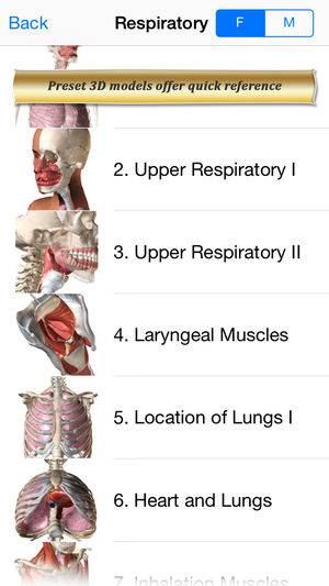 呼吸系统解剖图谱》(Respiratory Anatomy Atlas) 是呼吸系统解剖、生理和常见病症的快速视觉参考。这款 iPhone/iPad 应用程序包括数十种三维模型、动画和插图。此应用程序是用英语。 这个应用程序非常适合于专业人士参考,并可作为呼吸、吞咽、说话、哮喘、慢性阻塞性肺病、鼻窦炎等疾病患者的教育工具。 此应用程序的内容包括: (1) 动画和插图 (2) 数十个呼吸结构的三维模型,以及其他身体系统的有限数量的模型。 (3) 超过 50 个呼吸系统解剖结构的定义和发音。 (4) 20 种常见疾病的描述。 您可以用这个应用程序做什么: (1) 查看呼吸系统的三维结构。学习…