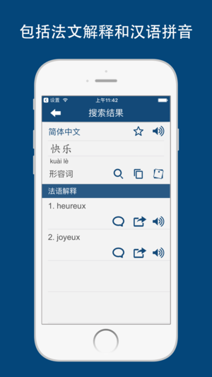 这是专为全球法语学习者编译的法汉字典APP。有不懂的法文生字吗? 赶快来查吧! 亮点: - 词库全面和最快的流动法汉字典 拥有超过 150,000 字的词库,即时显示搜字结果。提供法文解释和发声功能。 - 聆听,阅读及学习! 提供正宗的法文发音、法文解释、普通话发音和汉语拼音。 - 灵活的搜字方式 透过进阶的搜索技术,快速地显示搜字结果。您可使用法文、中文或汉语拼音进行搜索。 - 词汇学习卡 所有词汇均备有汉语学习卡,帮助记忆和强化学习体验! - 搜字纪绿 自动保存曾经搜索的词汇,您可以轻易地管理、存取和移除这些纪录。 - 交互发音功能 发音功能可与正在播放中的音乐和通话交互进行,…