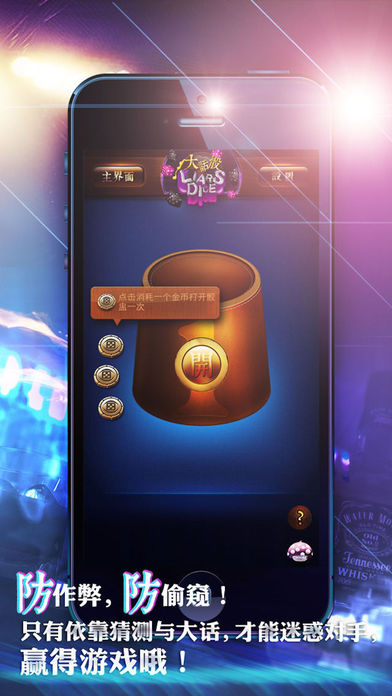 何处大话,哪里骰? 有了“大话骰”,随时大话,随地骰! 大话骰是酒局、聚会、KTV、CLUP 中一款经典群体综艺游戏,因其娱乐性强但又不失益智脑力思考而备受玩家推崇。 但是由于这个游戏要使用到大量的骰子和骰盅,不能随时随地玩,不过热衷于这款游戏的玩家们不要担心,有了“大话骰”,就能立刻把你的IPhone变成骰盅,和朋友玩游戏、猜点数了。 不需要骰子和骰盅,只要带上手机,把IPhone当做摇骰子的骰盅,就可以和身边的朋友如同在party中一样,尽情放纵狂欢,享受游戏的疯狂了。 游戏中,玩家在叫骰时要尽量用大话误导别人,而且还要通过察言观色来识破他人的大话诡计,非常考验猜测与反猜测能力哦,让玩家在彼此的明争暗斗中,获得游戏的乐趣。 游戏说明: >>游戏模式 如果你和你的朋友都有iPhone或者iPad,那么可以免费安装使用单人模式玩。 如果现场只有1台IPhone或iPad,那么可以选择使用双人模式和三人模式,最多3人一起玩! 游戏进行时的大部分操作均可用手势完成,真实感强烈。您还可以探索一下,不用点击,而是去滑动、拖动哦! 同时,游戏还具有防作弊功能,摇好骰子后,骰盅会自动合上,防止其他玩家偷窥。如果玩家忘记了自己的点数,只需点击旁边的金币,就能打开骰盅二次查看啦! >>游戏进行方式 入局的玩家,每人分给骰盅1个,骰子5个,等定位后,玩家摇晃手机进行摇晃骰子的动作,骰子摇定后,看自己的骰子点数,然后猜测对方骰子点数,估算出所有玩家的某个点数总和进行叫骰,互猜各方骰子点数加起来有几颗。玩家对叫骰者叫出的骰子点数产生怀疑时,可以要求所有参与者进行开盅验证。开盅后,如果叫骰者猜对点数,那么叫骰者获胜,怀疑者失败;如果叫骰者猜错点数,那么怀疑者获胜,猜错点数的叫骰者失败。 >>游戏规则 玩家在叫骰时从A个B开始叫,其中A=1、2、3、4、5、……,B=1、2、3、4、5、6。比如玩家可以叫3个4,叫完后,其他人如果不相信这个点数存在,可以“开”所有人的盅。如果所有人的盅里点数相加没有“3个4”,那么选择开盅的人赢,叫骰的人输。如果玩家叫了“3个4”后,其他人相信,可以由其他人继续叫骰,叫的点数必须比“3个4”要大,比如“4个4”或者“3个5”……直到有人不相信,进行开盅,才能判断输赢。 >>特殊玩法 当玩家叫骰时,如果“1点”数没有被喊到,那么“1点”可以作为任何数,也就是“百搭”。例如所有骰盅内共有1个5,3个4点,2个1点,则此时相当于有3个5,或5个4。 >>游戏策略 叫骰时应先采取一些欺骗性策略手段来迷惑对手,这也是大话骰中“大话”这个名字的由来哦,说大话、谎话令对手产生错误的判断,而后按自己的点数真实叫骰,虚实结合,所向无敌。 各位玩家,还在等什么,赶快拿起你的手机,下载大话骰游戏,和朋友们体验游戏带来的狂欢吧! 如果你有任何意见或建议,请找小蘑菇哦! 您的每一条宝贵意见我们都会认真阅读和参考,并以此为方向和动力,从而更加完善我们的游戏。