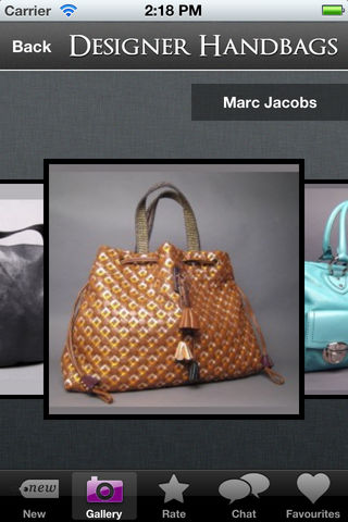 The Designer Handbags app is for all the fashionistas out there who admire beautiful handbags made by the industry’s most lucrative and well-known designers. The Designer Handbags app features: - Beautiful galleries filled with the latest handbags from the hottest designers - The newest trends and styles delivered straight to you through the ‘New’ section - See what other fashionistas are talking about using the ‘Chat’ function - Take a photo of a handbag and give it your personal rating using the ‘Rate’ function. You can then post the image to your social network for your friends to see The hottest trends by the biggest designers + much more… The Designer Handbags app.