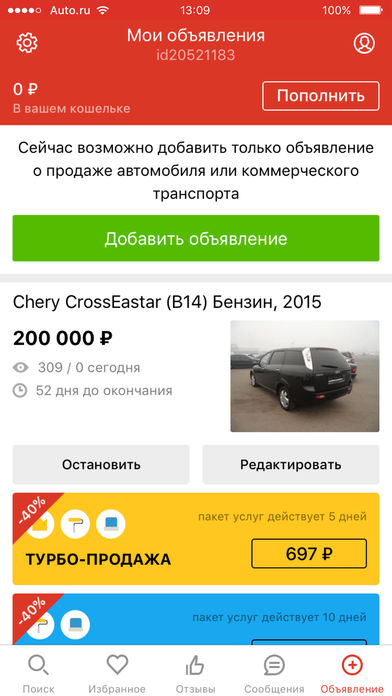 Auto.ru — это приложение для покупки и продажи подержанных и новых автомобилей, мотоциклов и коммерческого транспорта. Более 450 000 актуальных объявлений с фотографиями и описаниями комплектаций. Возможность создать объявление прямо с мобильного — для тех, кто хочет продать. Для удобства поиска авто: ● Поиск конкретной модели ● Подбор машины по цене ● Подбор по пробегу Настройки поиска удобно сохранять, чтобы не создавать каждый раз заново, а определиться с выбором помогут отзывы других автовладельцев. Для быстрой продажи: ● Создание объявления за пару минут ● Достаточно рассказать об основных характеристиках ● Добавление фото и видео прямо с мобильного Все ваши объявления доступны в личном кабинете — в приложении и на сайте Авто.ру. Авто.ру — один из самых посещаемых автомобильных сайтов в российском интернете. У нас самая обширная база объявлений о продаже разных видов транспортных средств. Есть стандартная, проверенная юристами форма договора купли-продажи. Мы хотим, чтобы автомобильный рынок стал более безопасным и комфортным для обычного человека. Свои вопросы, замечания и любые идеи по улучшению приложения присылайте на helpdesk@auto.ru. Сайт: https://auto.ru Мы в социальных сетях: VK https://vk.com/autoru_news Facebook https://www.facebook.com/auto.ru Одноклассники http://ok.ru/autorunews Twitter https://twitter.com/autoru