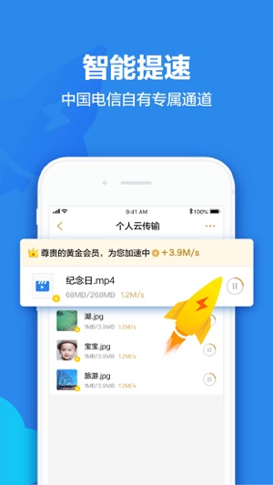 【天翼云盘 极速安全】中国电信倾力打造,已为4.3亿用户提供云服务!国家队品质,专属机房及传输通道确保快速访问,多重加密计算,保障文件更安全! 【——天翼云盘能为你做什么——】 1.【相册备份】手机相册、视频自动备份,从此告别手机空间不足,照片丢失困扰 2.【智能相册】海量照片智能分类、安全保管,再也不用花时间整理照片 3.【家庭云】个人云盘新增家庭云空间,家庭照片、视频一人上传全家共享!支持电视大屏幕分享 4.【尊贵会员】全新黄金/铂金会员,超大存储空间、专属传输通道、单文件上传无限制等特权等你来体验 5.【便捷分享】一键分享到微信、朋友圈、QQ好友等 【——哪些人在用天翼云盘——】 1…