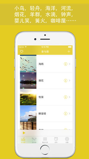 *被iTunes推荐在246个地方。被评价为最佳放松、睡眠类APP!!!* * 网站,杂志,顾客评论: * "⋯⋯无法想象没有它的晚上该如何度过⋯⋯" * "非常非常非常喜欢!简单又有趣,我的孩子都非常喜欢,感谢一个如此棒的程序!" * "⋯⋯混音功能非常棒,相信大家会爱上它的,强烈推荐⋯⋯" * "⋯⋯优美的界面、简洁的UI、 " * "⋯⋯这是最棒的放松声音类app⋯⋯" 受到睡眠问题困扰? 上一次听虫鸣鸟叫的声音是什么时候? 压力太大,想逃离都市生活? 亚健康,精神疲惫? 这就是最适合你的APP!!! 特色 *放松的声音 美妙的天籁之音,每个配以高清图片。 *混合器 你…