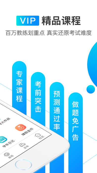 驾考宝典,最具人气的互联网综合驾照考试学车平台,为学员提供从报名到领驾照全方面驾考服务的学车软件。全真题库解析实时更新,驾校、教练、司机、学员力荐下载首选!全新VIP超级精选课程,全程享受会员服务,整合学车流程,百万教练帮您划重点,全方位为您学车保驾护航! 【VIP精品服务】 VIP精品课程服务,整套教学服务全面辅导,助你轻松应对驾照考试,以最快的速度考取驾照! 1).名师课程:专家帮您划重点,分阶段闯关练习,有料更有趣; 2).难题攻克:准确把握考试难点,精心挑选重点题进行模拟训练; 3).考前突击:百分百还原试题难度,模拟真实考试场景,通关无压力; 4).易错题集:大数据整理广大网友易错题,同时根据个人做题记录,智能定制个人易错题集; 5).预测通过率:根据个人做题速度、准确率、做题数量、频率、次数等数据,科学预测考试通过率; 6).会员特权:做题免广告,精力更集中;考前神预测,考试更轻松; 【3.2亿学车人的选择】 权威题库:采用2017年新版全国标准,涵盖小车、客车、货车、摩托车、资格证题库,同步官方实时更新; 流程全面:选驾校、报名、理论模拟考试、科目一、科目二、科目三、科目四、新手上路,最全考驾照流程,一个app全搞定。 科一/科四专项突破:难题、易错题逐题解析知识点,巧妙记忆交通标志、交警手势,更有科目一、科目四考试技巧与满分通过宝典。 【产品特色】 1、全真模拟:真实再现理论考试场景、科目三灯光官方考试录音,学车更有效,考驾照更轻松。 2、云端同步:登录后练习,学习进度一键同步,手机、电脑、平板自由切换,考驾照更省心。 3、学车视频:为学员精心制作的科目二、科目三考试高清视频,先观看再操作,熟悉机动车运动轨迹,心里更有底,驾考不心慌。 4、考前冲刺:全力冲刺驾校考试,驾考易错题、重难点一键巩固,助你科学安排学习时间,驾考不想通过都难! 5、驾考社区:求助、吐槽、晒驾照、抢福利,全国各地学员一起交流学车经验、讨论考驾照心得,学车不寂寞,驾考一点通。 【联系我们】 家族产品:全国违章查询、车友头条、买车宝典 微信公众号:驾考宝典 官方QQ群:472190391 官方网站:www.mucang.cn 商务合作: app@mucang.cn