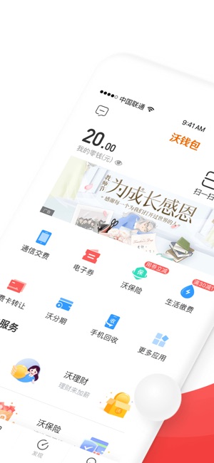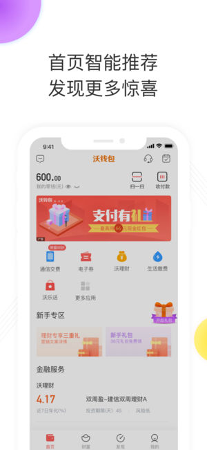 沃钱包手机客户端是联通支付有限公司为广大用户倾力打造的,集生活服务和互联网金融信息服务为一体的专业移动钱包。涵盖了通信交费、生活缴费、沃理财、联通电子券、信用卡还款、收付款、京东商城、火车票等功能。优惠不断,惊喜多多~ 主要功能介绍: 1.充值、转账、提现、扫一扫、收付款,方便快捷,免手续费; 2.通信交费,话费充值享受9.85折; 3.生活缴费覆盖220个城市,让您足不出户把费缴; 4.信用卡还款免手续费,极速到账; 5.京东商城、火车票、电影票,品类丰富,优惠多多; 6.联通电子券可兑换多种卡券及权益,超市购物也能用; 7.沃理财、沃乐送、沃分期等多款产品,为您提供优质、安全、便捷的金融信…