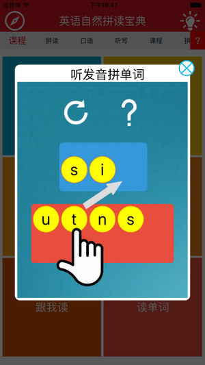 Appstore排名第一的英语拼读应用,是中小学学生学习国际上最流行的英语认读方法—自然拼读法(Phonics)的最佳应用, 由大学教授结合多年教育经验精心设计, 让广大学生无需参加昂贵的学习班, 就可以轻松掌握自然拼读法, 可以达到无需音标、无需死记硬背、见词能读、听音能写。 英语自然拼读宝典——把英语教学中的视、听、说紧密结合, 循序渐进地培养孩子的语音感知和运用能力。纯正发音领读, 让孩子从小感受地道英语发音, 从此孩子和枯燥的音标学习说bye-bye!, 本应用将成为孩子贴身的一对一家教辅导, 使一年级以上已经学习过中文拼音的学生只要稍加学习即可迅速学会, 帮助学生永久摆脱死记硬背英语…