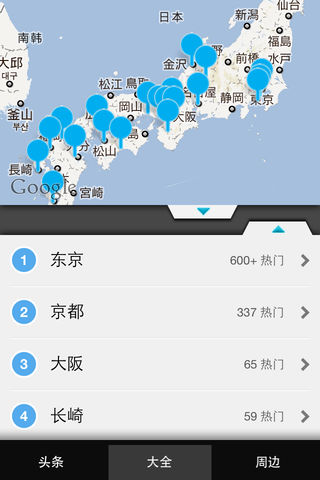 ★★★★★ 在41个国家和地区进入排行榜的明星产品 ★★★★★ 最强日本玩乐傍身利器! ★日本旅游大全★。独家收录东京、京都、大阪、长崎、奈良、名古屋、横滨等30+热门旅游城市的 3000+ 美景、美食、购物、夜生活地点, 包含地址、电话、价格、开放时间、交通、简介等资讯! 包括: - 东京 - 京都 - 大阪 - 长崎 - 奈良 - 名古屋 - 横滨 - 北海道 ...... 实时定位推荐周边地点,不仅可给你提供本城市游玩出行时的玩乐向导; 覆盖日本30+热门旅游城市,更可让你旅行时不用再携带密密麻麻的攻略和地图, 日本全境任我行! ★主要功能包括★ ★ 美景宝典 ★ 美食宝典 ★ 购物宝典 ★ 夜生活宝典 ★ 地图与资讯紧密衔接的浏览方式,如同实地鸟瞰旅游一般,探索日本美景美食购物夜生活好去处随心所欲 ★ 通过GPS定位功能,随时检索附近景点、餐厅和购物场所,方便定位和寻找 日本旅游大全,让你成为日本国玩乐达人!
