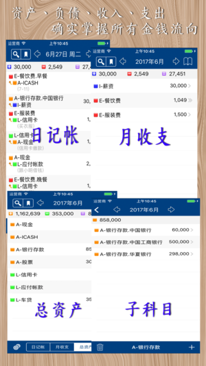 * 优惠价 USD$3.99 (原价USD$5.99) * 【简介】 MyAsset 是一套简单易用的记帐软体。 利用iPhone随手带随手记的特性即可轻松做好个人的财务管理。 您可以随时随地检视每日、每月的收支情形并精准掌握个人目前的资产与负债。 将帐户科目明确区分为资产、负债、收入与支出,完整交待所有金钱流向,确实掌握您个人所有的资产与负债。 单一画面完整呈现每月收支、资产、负债与净资产。 【功能介绍】 √ 单一输入画面(简单不复杂) √ 日常收支记录 √ 资产、负债、收入、支出管理 √ 帐户/科目群组化管理(可设定子帐户,自由度高) √ 摘要管理、关键字查询 √…