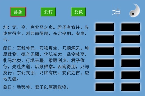 ###新游戏《七重奏》上线了,请火速前往下载! ### ###New Game 'Septet' is online now! ### 凝聚着中国古圣先贤古老智慧的《易经》,曾被误解为就是一本算命的书。其实,算命只是它最小的用途,那么《易经》究竟是一部什么样的书呢?神秘的《易经》,也称《周易》,是一部既古老又新奇,既陌生又熟悉,既高深莫测,又简单容易的书,是解开宇宙人生密码的宝典。自古以来,人类一直在努力探索着宇宙人生的奥秘,但是直到科技高度发达的今天,仍然没有破解宇宙的秘密,难道我们的老祖宗,在几千年以前就做到了吗? 《学易有道》本着寓教于乐的精神,彻底摒弃传统书籍的目录模式,将易经通过游戏的方式表现出来,让用户更轻松,更快的学习易经。 1.在主界面点击屏幕左边,进入学习模式;点击屏幕右边,进入游戏模式。 2.在学习模式,用户可以点击对应的爻来切换爻的阴阳,从而改变整个卦象,屏幕里则会出现相应的对卦象的描述信息,同时用户也可以通过上下左右滑动屏幕来改变卦象以及所要查看的卦辞。 3.如果你觉得学习累了,可以切换到游戏模式。在游戏模式里屏幕上将随机出现卦象名,用户则需点击爻来改变卦象,如果当前的卦象与屏幕里某个卦象名相同,卦象名会消失,就像大家以前玩的打字练习一样。 特色: ※ 摒弃传统书籍的目录模式,全新的章节选择方式。 ※ 最多只需六步,你就可以看到任何你想看到的卦象及解释,再也无需多次翻页。 ※ 游戏模式让你劳逸结合,同时迅速记忆卦象。
