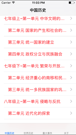 *****《初中知识点总结大全-历史》是一个帮助初中生朋友总结历史知识点的好应用。 -----内容涵盖了初中生的:中国历史、世界历史、重大事件以及习题大全 -----十分适合初中学生、教师使用。 【内容目录:】 =====中国历史 七年级上册 第一单元 中华文明的起源 第二单元 国家的产生和社会的变革 第三单元 统一国家的建立 第四单元 政权分立与民族融合 =====中国历史 七年级下册 第一单元 繁荣与开放的社会 第二单元 经济重心的南移和民族关系的发展 第三单元 统一多民族国家的巩固和社会的危机 =====中国历史 八年级上册 第一单元 侵略与反抗 第二单元 近代化的探…