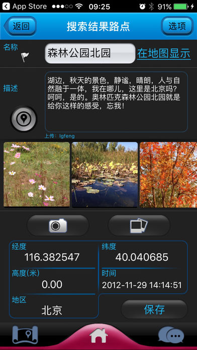 *** 最佳户外运动助手,专为驴友团队活动设计。具有标记路点,录制轨迹,指南针,高度,速度等全部手持式GPS功能,多点GPS还增加了“实时位置分享”、“短信”、“网络对讲机”和“即时照片分享功能”。使您在户外活动中更安全,更易与伙伴交流分享。同时我们也增加了上传和搜索功能,这样您可以一键分享您的路线和路点。 *** 具有对讲机功能的GPS,能够保持团队成员实时联络,在地图上查看彼此的实时位置! ================ ***路线/路点:非常方便地生成新的路点或者记录新的路线;一条路线可以拍摄,显示多张图片,一个路点可以添加并连接多幅图片;路点和路线可以一键生成和保存;可以生成不同类型的路线、路点,易于增加和修改照片,可以随时修改文字注释; ***分享:可以通过邮件和短信向朋友分享路点和路线; ***地图/导航/指南针: 可实时查看地图,了解您的方向、位置和移动速度; 沿路线导航到目的地;离线地图下载,以供无网络连接是使用。 ***上传/搜索:可以一键向所有人发布您的路点和路线,其他人可以采用关键字或者位置进行搜索; ***频道/消息:可创建您的专用频道,可允许频道成员实时查看对方位置,成员间可以实时广播文本信息、网络对讲和实时照片共享等;可与安卓系统互通 *** GPS优化:采用先进技术我们可以智能地计算位置,平衡精度和电池寿命,给您带来最佳体验; ============ **户外活动:使用路线记录功能您可以记录自己的活动的路线,距离、时长、速度等数据;利用路点功能可以标记某个位置,并添加多张照片;使用频道功能可以与团队伙伴实时联络并查看彼此的实时位置。 **让朋友轻松地找到您,可以通过短信和邮件分享您的当前的地理位置和到达这个位置的路线。 **与朋友分享您感兴趣的地点,并附上照片和位置信息,例如餐馆、商场、娱乐场所、运动地点、户外活动地点等。 **组织团队活动,可以通过分享路点和路线来组织活动,可以使用频道来跟踪每个伙伴的位置,可以使用短信、图片、语音等频道消息实时沟通。 **在地图上定位您的亲朋好友,可以通过频道向他们发生短信、图片和话音交流 **随时推广您自己的实体店,可以发布促销、广告或者活动信息,并附上位置信息,其它人可以通过搜索来获取信息并亲临现场。 **导航到某一点或沿路线走,通过分享您的路线,可以使朋友们知道如何到达特定的地点和路线。 注意:持续在后台使用GPS,将会大大降低电池的续航时间。