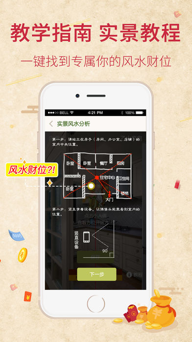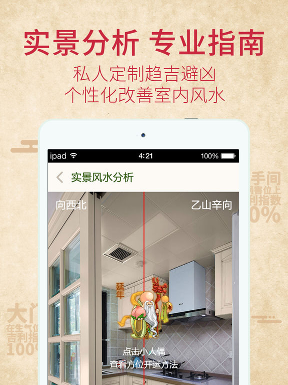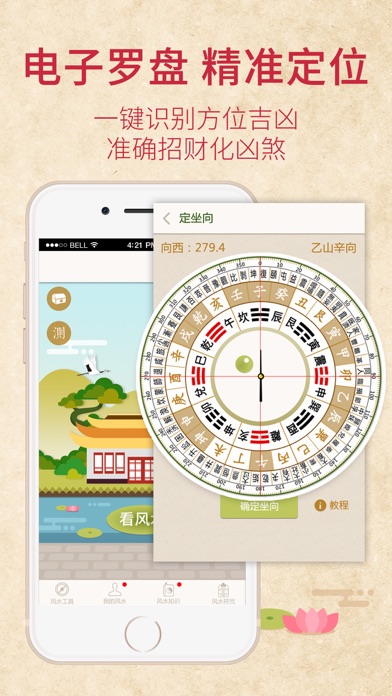 采用2016年最新科技研发,利用精确的经纬度加上实景拍摄模拟,然后再专业地计算用户出生八字的开运方位,准确地计算出您的最佳开运位置。 风水实景为你详尽地讲解目前你的风水位置,让你更加了解你的前程未来。 新功能介绍: [房间吉凶]:房间吉凶模式是解决住宅各房间布局风水上的问题。例如:大门向南,如果睡房在东方,受睡房影响主人会容易疲劳生病,对自己失去信息,需要使用这个功能调整睡房的风水,破除睡房的负面影响。 [流年方位]:流年方位模式是分析住宅中吉凶方位,调整流年风水影响。例如:今年东南方是文昌位,想要工作顺利,提升个人运势,就要调整东南方的风水。此外建议自建、改造住宅的朋友使用此功能去规划住宅。 [住宅平面图]:住宅平面图模式可以精准分析出住宅中每个位置的吉凶情况,想要生活美满就要善于利用住宅中的每个吉祥位置,该模式需要有一张住宅的平面图才能使用。 风水之学又叫堪舆之学,是我们中国流传下来的相地之术,中国风水学的形成由来已久源远流长,可以追溯到远古时代。风水的核心思想是人与大自然的和谐共存,了解自然环境,利用和改造自然,创造良好的居住环境。风水位置影响着一个人的身心状态,处在一个好的风水环境里,人的各种命理运程也会跟着改善。可是你知道一个人的生辰八字也会与他的环境风水有密切的联系么,不同命格的人适合不同的风水,好的风水都是相对其个人而言的。 当你的命格与你的风水现成相辅相成的最佳状态时,你不仅可以提升环境积极能量,还可以使人的思维清析,安神养性,保持和谐的精神状态。古代风水大师通过磁场感应,精心制作了风水罗盘来,给大家寻找最好的风水宝地,而如今时代发展,更加精细更加准确的罗盘诞生了,风水实景罗盘。 风水罗盘利用现在科技与传统风水理论相结合,通过不一般的方式来计算最适合你的风水位置。风水实景罗盘需要记录你的出生年月,然后与你的居家房子大门的所对位置纬度进行深入匹配,为你详尽地讲解目前你的风水位置。让你更加了解你的前程未来。