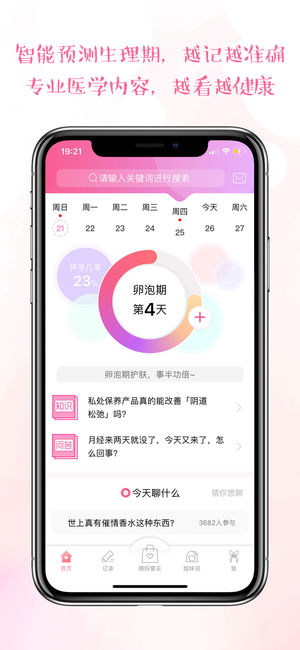 月经期管理软件,大姨妈备孕神器~每个女人的生活必备工具~ 1亿女性用户信赖,好评率99%,《天天向上》力荐! 备孕、怀孕、孕期、育儿,多种模式任您选择! 【月经】帮你解决:日期记不清?要不要忌口?哪个牌子的卫生巾好用? 【贴心提醒】提前2天告诉你月经到来,做好准备~越记越准确哦~ 【备孕】怎样迅速怀孕?怀孕期间哪些东西不能吃?有宝宝怎么做辅食? 【妇科医生】问答专区、小仙女健康周,解答为什么会痛经?为什么会有妇科疾病?怎样才能怀宝宝? 【心理医生】教你如何释放压力?怎样缓解焦虑?每周三情感学院直播~ 【礼包】新手立享200元券~ 【社区】减肥、瘦身、美容、美妆、交友、购物,女生喜欢的东…