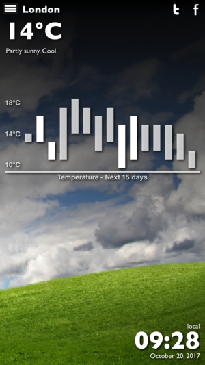 Beautiful weather for your device. - Beautiful images & ultra smooth animations - Supporting 70,000+ locations - Current weather conditions - 15 day weather forecast, touchable to see details - 15 day weather graph showing high/low - Hourly weather forecast for next 48 hours including % of r…