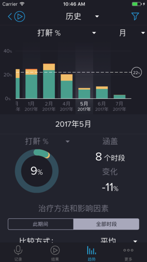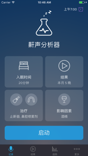 用最好的iOS鼾声分析软件来记录、测量和减少您的鼾声。医生强烈推荐! 鼾声分析器利用声波分析来测量和记录鼾声,帮助您找出减少鼾声的有效方法。 “这个应用是个意外的惊喜。我第一次感觉能够控制打鼾了。谢谢鼾声分析器!” “鼾声分析器是我用过最好的睡眠记录器。仅仅两周,我打鼾的程度就缓解了40%以上。” ▷ 在30个国家的医疗应用排行榜上位列前十 ▷ 位列33个国家的医疗应用“热门榜” ▷ 等网站重点推荐。 ▷ 获得HealthTap网站美国顶尖医生的推荐。 优点: ▷ 先进的鼾声检测算法 ▷ 记录鼾声样本 ▷ 测量鼾声强度(鼾声评分) ▷ 记录睡眠统计数据 ▷ 电邮声音文件 ▷ 显…