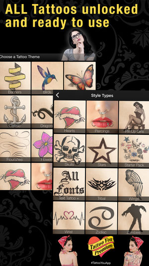 The premium tattoo app to add tattoos to your photos with no in app purchases required. See what that tattoo would look like before you commit or prank mom and dad. Download Tattoo You and add some spice into any of your mobile photos by adding in virtual tattoos with the click of a button right now…