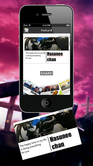 Hi Welcome to BRS ! Black Rock Shooter Wallbook Anime This Application for Black Rock Shooter Fanclub This Application collects many details for BRS Fanclub such as - Wallpapers - Camera - Postcard - Synopsis - Character details - Agent site (Website,BBS,Forum and Shoping Item and Accessory) - Sharing and Social network
