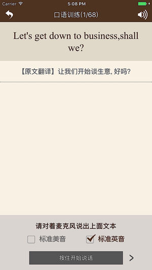 商贸英语是以适应职场生活的语言要求为目的,内容涉及到商务活动的方方面面。商务英语课程不只是简单地对学员的英文水平、能力的提高,它更多地是向学员传授一种西方的企业管理理念、工作心理,甚至是如何和外国人打交道,如何和他们合作、工作的方式方法,以及他们的生活习惯等,从某种程度上说是包含在文化概念里的。每日必听英语,是国内最受欢迎的开放式英语学习平台,实现声音和文字同步播放,让您迅速提高英语听力和口语,攻克英语学习难关! 【软件特色】 * 每日听力,超大文本同步显示。强大播放工具,支持全屏,单句或全文循环,5种语速设置等 * 口语训练,自动评估发音。每天15分钟,彻底告别哑巴式英语 * 听写练习,…