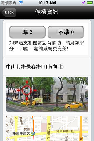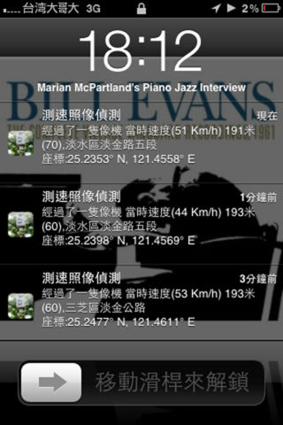 测速照相侦测程式 ,内含国道丶平面丶高架,固定测速照像机的座标,不定时透过应用程式升级的方式更新 软体特色 : ◎ 资料准确丰富,团队维护更新,也可自行新增删除像机 ◎ 靠近照像点,语音提示距离与限速,不用时时分心看画面 ◎ 电子罗盘,显示车行方向与车速 ◎ AGPS,立即定位,又兼具传统GPS精确之优点 ◎ 独家显示定位误差范围,坏天气的影响一目了然 ◎ 智慧型未移动节电设计 ◎ 港台提供平面市区(橘),高架快速(蓝)骑机车专用模式(绿) ◎ 支援背景执行模式,在使用iPhone其他程式时,仍可执行警示 ◎ 结合iPod 音乐播放的贴心设计 ps:程式在背景仍使用GPS,會消耗您手機的電力,我們會在您十分鐘內未移動超過500公尺的狀況下,主動關閉GPS並提示您。 使用說明: 1.使用前請從手機設定處,打開iPhone的定位功能且允許程式取得您的位置。 2.確定聲音是開啟的狀態並調整適當音量。 3.下方選單可切換不同模式,觸摸螢幕會出現最近一支像機的照片,雙擊螢幕會出現像機維護的選單 4.在確定有定位及音量的狀態下,駕駛中,遇到像機,程式就會提示。 5.手機設定需允許程式推播通知,才能在背景中執行偵測通知 iPhone 定位系統精確度,與天氣及行動基地台的位置有關,本程式之提示,只供參考,一切以實際路況為主,請自行注意行車安全,本公司不負任何賠償損失。 (使用手機架置於前車窗在無遮蔽物的天空下可得到最佳效果,在取得衛星定位的情況下,將會顯示車速及車行方向 ,誤差範圍xx米,代表定位的誤差距離,越小越好) 提示時機:當車速高於 60km/h ,將於靠近前300米時提示,40Km/h為200米,否則於100米前提示 上國道高速公路後,建議切換至高速公路模式(藍色),可減少交會市區道路的像機干擾 機車族也可將iPhone放包包中戴耳機使用, 本程式已結合iPod音樂播放功能, 當靠近像機時會以警示音提醒您(放在包包時, 因無法收到衛星定位, 只靠手機基地台定位, 精確度較差), 畫面會顯示附近2公里之內的像機離您的距離及裝置,最上方一行是離您最近的那支,當距離少於300米時,會以黃色來警示 本程式經啟用後即使於背景中也會保持GPS開啟狀態,不使用時請關閉GPS以節省電力Continued use of GPS running in the background can dramatically decrease battery life. 有任何使用上的問題及建議,歡迎至facebook粉絲團 http://www.facebook.com/SpeedCamera 留言