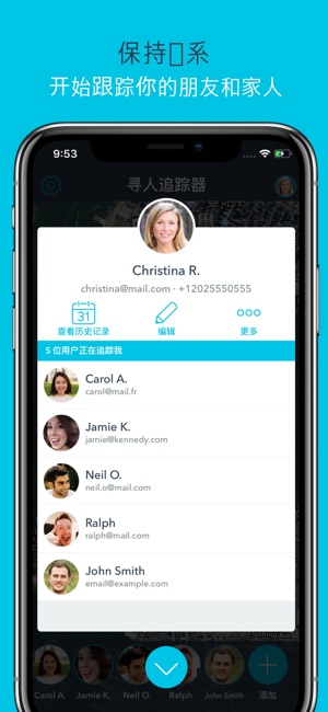 寻人追踪器是一个让您跟雇员,朋友,家人,同事等等保持联系的应用...或者其他您希望实时详细定位的人。追踪手机号码! 寻人追踪器可以使您: -通过您的手机,在他们同意下查看雇员,朋友,家人,同事等等的地图实时位置。 -查看精确位置,包括街道名称,城市,省份,国家,邮编,经纬度。 -在同一地图同时追踪多人。 -查看他们最近走过的路径。 -建立不同大小的地区,让您可以查看有谁进出该区或在附近。 还有更多… 它是如何运作的: 您只需要在您手机上安装应用(您希望追踪的人也需要安装此应用)。安装完成后,您需要邀请您希望追踪的人。当他们接受了邀请后,您就可以用您的手机地图查看他们的位置。您希望邀请多少人…