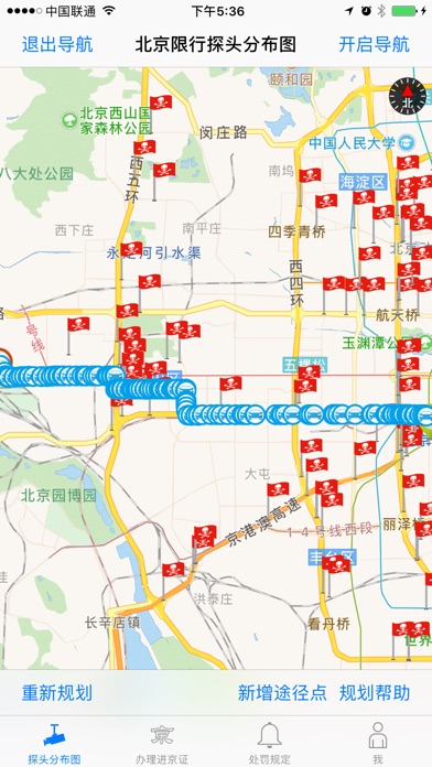 本软件提供北京市全城限行监控摄像头分布图,可以帮助您远离交通违规,避免不必要的经济损失。本软件还提供了地图导航功能,您可以自行设计驾驶路线,并进行实时导航。此外,本软件也提供了违反北京限行规定会遭到的具体处罚规定,以及外地汽车牌照办理进京证的地点和方法。 本软件是您在北京开车必备,快来免费下一个吧! 本软件数据来源于北京交通管理局和网友的收集,欢迎大家提交新的摄像头数据,以便我们能够持续地改进。