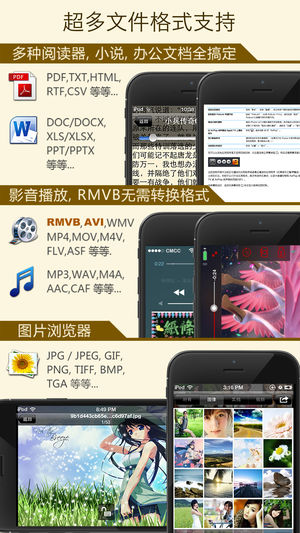 !!! 高级版首发,冰点促销一天,价格比普通版都要低的多哦!还不快抢! 『无线u盘 高级版』不但集成了『无线u盘』所有版本的所有功能,更具备了比如"网页下载"等独有的功能,而且是iPhone/iPad通用的版本 您是否在为您的手机不能自由传输文件而烦恼?您是否希望在您的手机上方便的查看您的文档和图片?您是否不希望您的某些文件被别人看到?您是否希望通过WIFI无线上传视频或音乐到您的手机?『无线u盘』可以帮您解决这些问题!它可以让您的手机变为一个文件管理器,并且您可以在手机中查看它们! 关键功能: - 多种传输方式!不但可以通过WiFi和USB传输文件,还可以与Dropbox,iDisk…