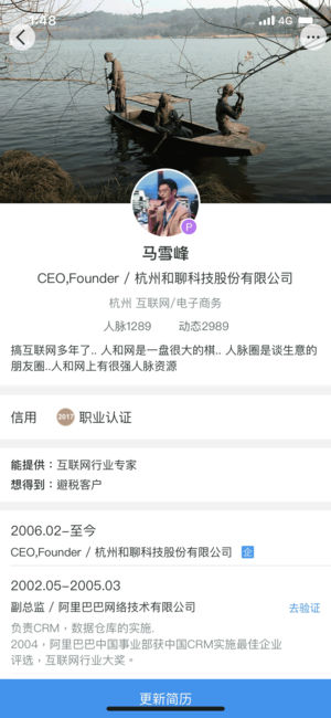 【找人脉在行的人和网移动端应用和聊!】 找人脉,聊商业;和聊是一款基于实名认证与职业 认证的商务社交平台;帮助用户梳理人脉脉络, 发掘用户人脉中的赤兔马,让用户不必再去大街上 找人脉。引领英才共同建立自己的人脉社区! 您可以体验到的功能: 准确人脉搜索,智能人脉推荐 一健导入人脉,即时在线交流 发现附近人脉,智能名片扫描 创建人脉圈子,人脉信息共享 行业热点推荐,专享会员特权 为什么要用和聊? 和聊是职场认识最喜爱的商务社交软件,相比于线下的商务社交,我们通过实名认证和职业认证,帮助职场员工,老板更加高效便捷的通过线上拓展人脉,成交生意,求职招聘,工作效率能得到极大的提高,也会…