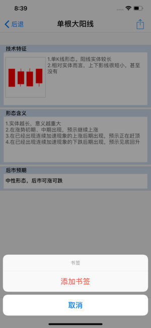 本软件特别适用于想在短时间内快速掌握基本K线分析技术的投资者。 K线图又称蜡烛图,是市场技术分析理论中的不朽经典,也是投资者首先应该掌握的技术分析方法之一。 K线图理论博大精深,本软件对其内容进行了高度浓缩和提炼,使投资者能在短期内就迅速掌握、学以致用。 具体内容包括: 1、83种K线图经典形态 2、从技术特征、形态含义、后市预期三方面对每一经典形态进行阐述。内容简洁精炼,直达主题 3、提供练习题训练功能,并统计用户答题正确率 4、提供书签功能