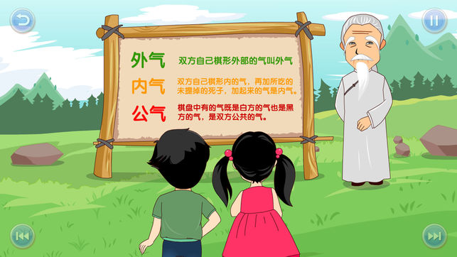 ********************第九课内容简介******************** 围棋就像带兵打仗,狭路相逢勇者胜!我们在前面学习了不少吃子技巧,现在,你们需要在实战中灵活使用这些技巧,尤其是黑、白双方相邻的棋均未活的情况下,就只能靠对杀来决一死战了! 围棋简单的说,就是看谁占的地盘多。黑白双方都想占地盘,都想自己地盘大,不靠拼杀怎么行?要想提高棋力,必须学会对杀。从今天开始,我就教你们对杀的技巧! 对杀的胜负是由双方棋子的气数来决定的,如果气数相等,先动手紧气的一方得胜。如果双方的气数不相等,那谁的气多,谁得胜!因此,对杀也叫“杀气”! 在杀气时,我们一定要分清楚“外…