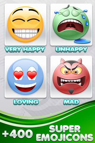 NEW EMOTICONS! MORE THAN 400 NEW SUPER EMOTICONS! * Very Happy * Un Happy * Mad * Loved !NEW PHOTO EMOTICONS EDITOR! * Personalize your Photos * You can add emoticons inside the photo and share this with your friends SHARE POSSIBILITY (emoticons and photos) * Email * SMS * i-Message * Twitter * Copy to clipboard (for use in other applications) Surprise your friends, and start using the New Super Emoticons and New Photo Emojis Editor Feature. Emoji app with different smiles, and unique photo editor, convertor is the one for you. What are you waiting for? Download this amazing quality app Right Now!!! “Super Emojicons- 400+ New Emoticons and New Photo Emoji Editor Feature!”
