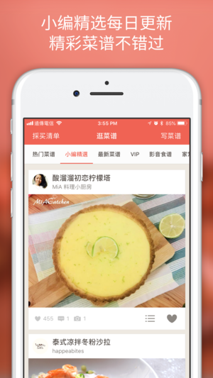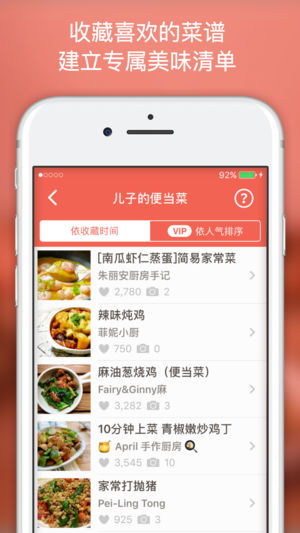 菜谱超过 160,000 道,美食料理自己做美味又健康!当季家常菜每日推荐,给你无穷晚餐菜色灵感,与热爱做菜或烘焙的你,一起分享美食与幸福时刻。 升级爱料理 VIP ,独享更贴心的六大服务:依人气浏览菜谱、独家菜谱与一週菜单、了解菜谱卡路里、搜索已收藏菜谱、 App 无广告、不定期超值优惠,享受更美好的料理时光 * 快速搜索 * 搜寻菜谱名称与食材关键字,找到想尝试的美食料理,不怕食材用不完 * VIP 独享人气排序,更快找到零失败的人气菜谱 * 图文步骤 * 跟着菜谱详细图文步骤,一步步完成料理 * VIP 独享 App 无广告,专注料理不受干扰 * 尽情收藏 * 轻鬆收藏喜欢的菜谱…